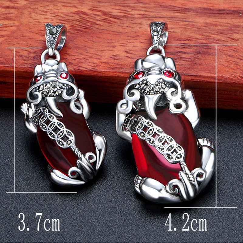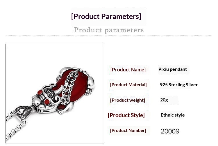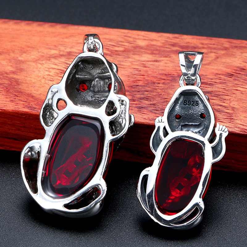 999 Pure Silver Pi Xiu Garnet Necklace For Women