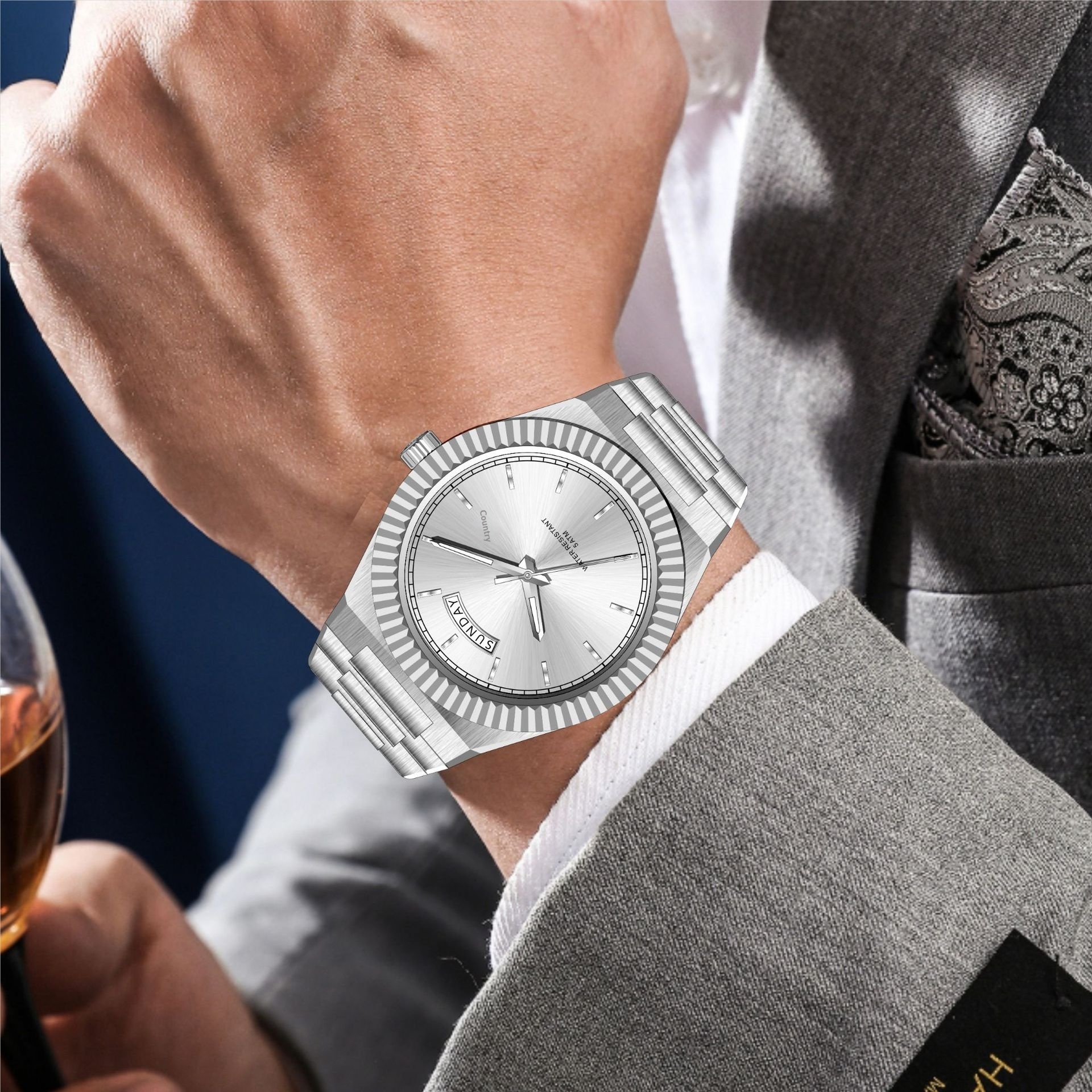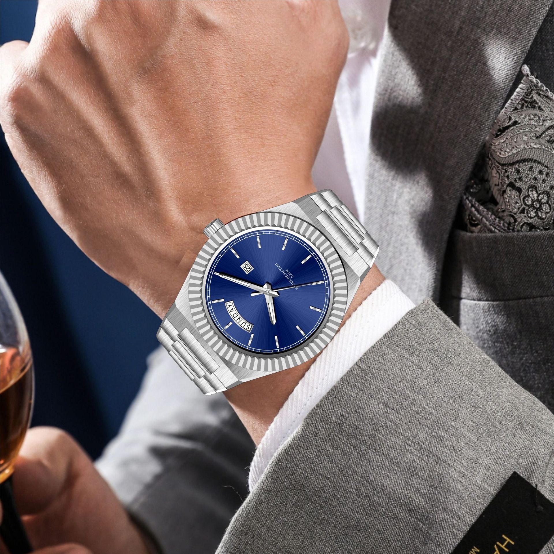 Business Gentleman's Log-Type Quartz Waterproof Steel Strap