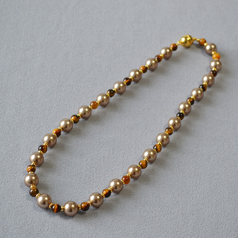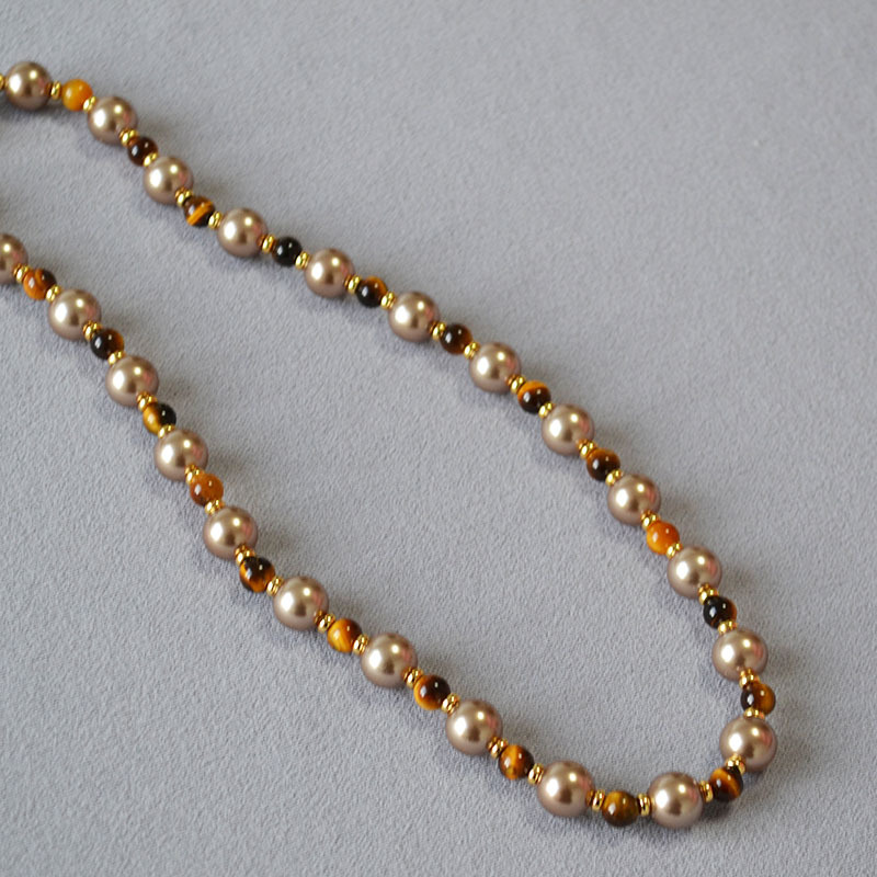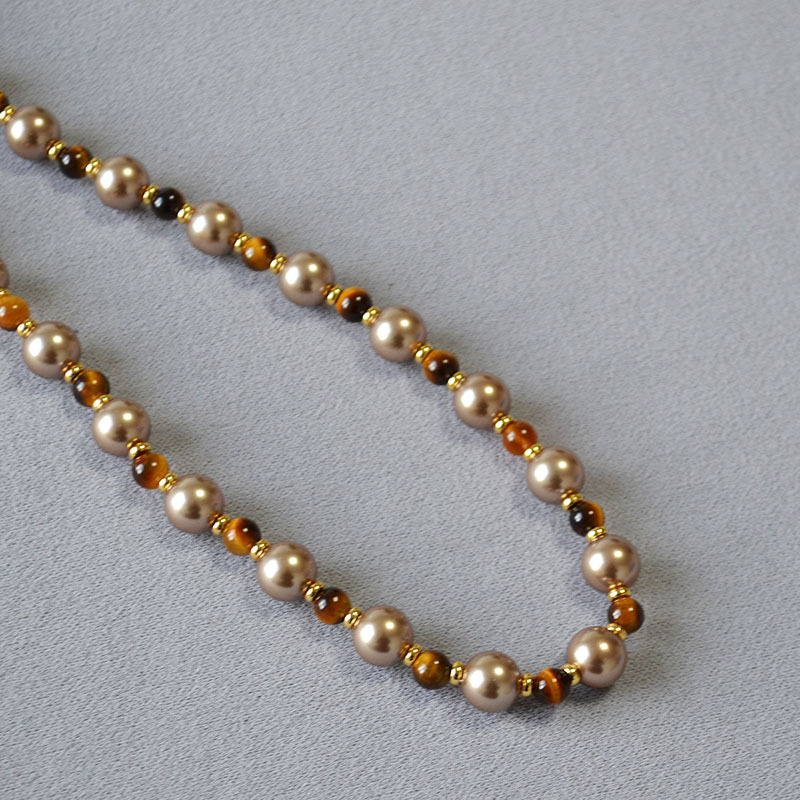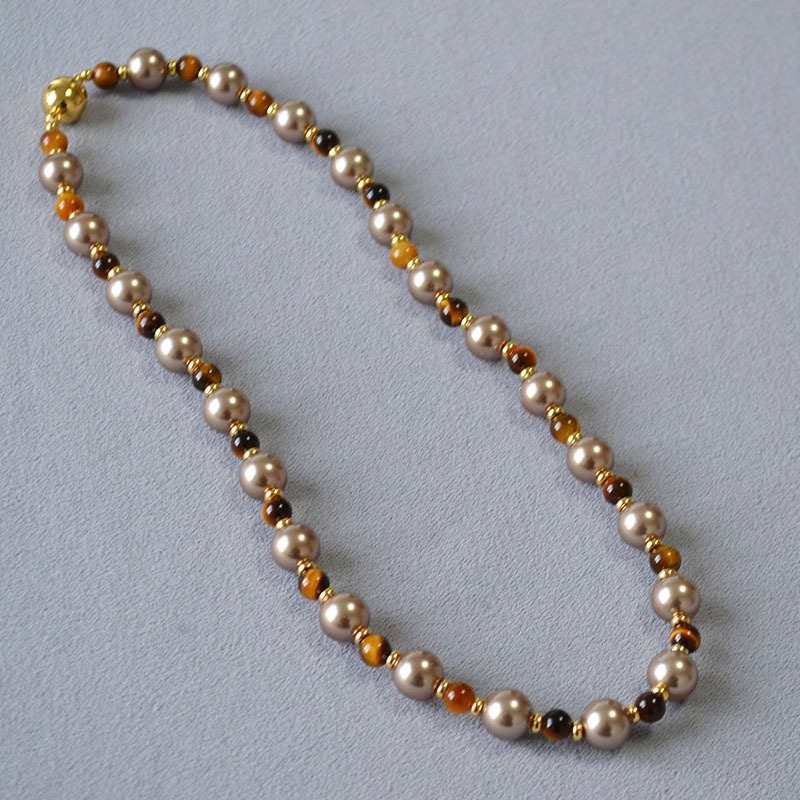 Retro Tigers Eye Beaded Necklace In Brown And Coffee Tones